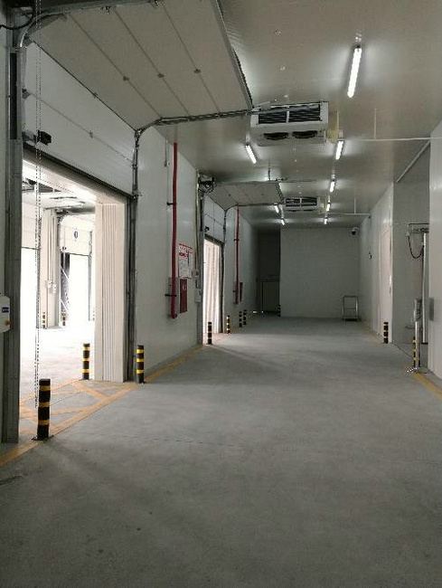 冷庫尺寸:長12m*寬5.7m*高3.3m,總面積為68平米/容積為224立方米,溫度:0~10℃,溫度自由可調節,五面體;